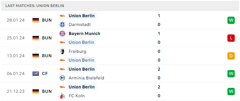 Phong độ của Union Berlin