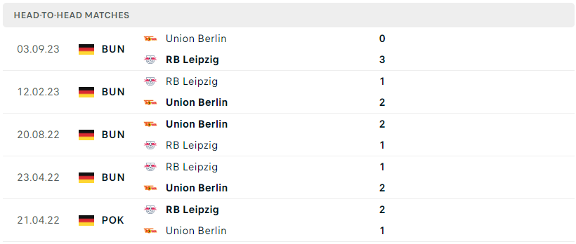 Thành tích đối đầu của RB Leipzig vs Union Berlin