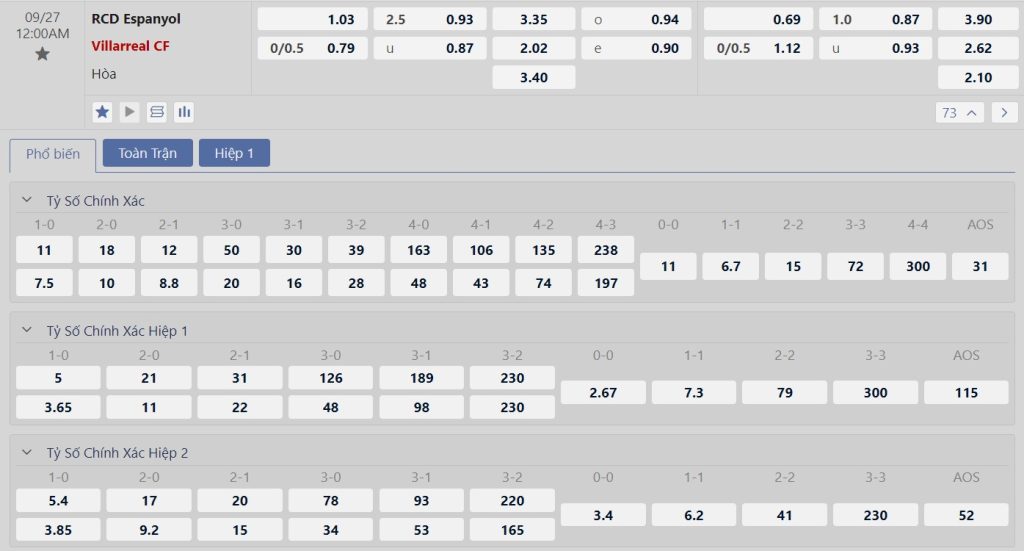 Với vị thế của đội bóng chỉ mới chân ướt chân ráo trở lại sân chơi cao nhất xứ đấu bò, không bất ngờ khi RCD Espanyol bị đánh giá thấp hơn Villarreal ngay cả khi có lợi thế sân nhà. Mức kèo trên sàn giao dịch châu Á được ấn định khách chấp 0.25 trái. Không phủ nhận sự tự tin của các học trò HLV Manolo Gonzalez đã được cải thiện đáng kể sau 2 trận thắng liên tiếp trước Rayo Vallecano và Alaves. Thế nhưng sự ổn định của đội bóng chỉ hướng đến mục tiêu trụ hạng vẫn là yếu tố cần kiểm chứng. Chưa kể ở 90 phút tới đây, Villarreal chắc chắn sẽ mang đến những thử thách cực đại. Bởi tính đến trước cuộc tiếp đón Barcelona, “Tàu ngầm vàng” đang là một trong những đội bóng bất bại ở 5 vòng đấu đầu tiên. Mục tiêu 3 điểm là hoàn toàn thiết thực với đại diện vùng Valencia dù có thể, đây sẽ là trận thắng khiến họ “trầy da, tróc vảy”