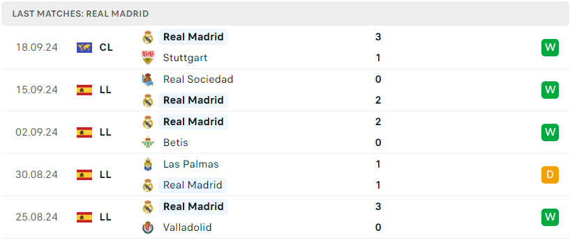 Phong độ đội bóng Real Madrid vs Alaves