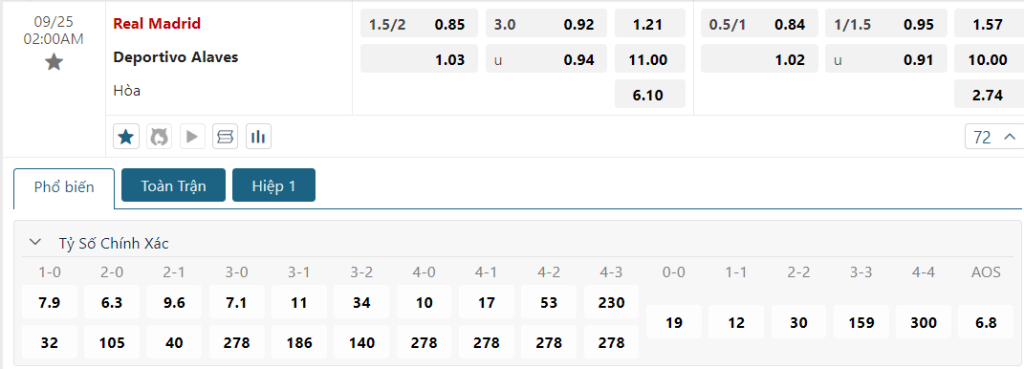 Soi kèo tỉ số Real Madrid vs Alaves