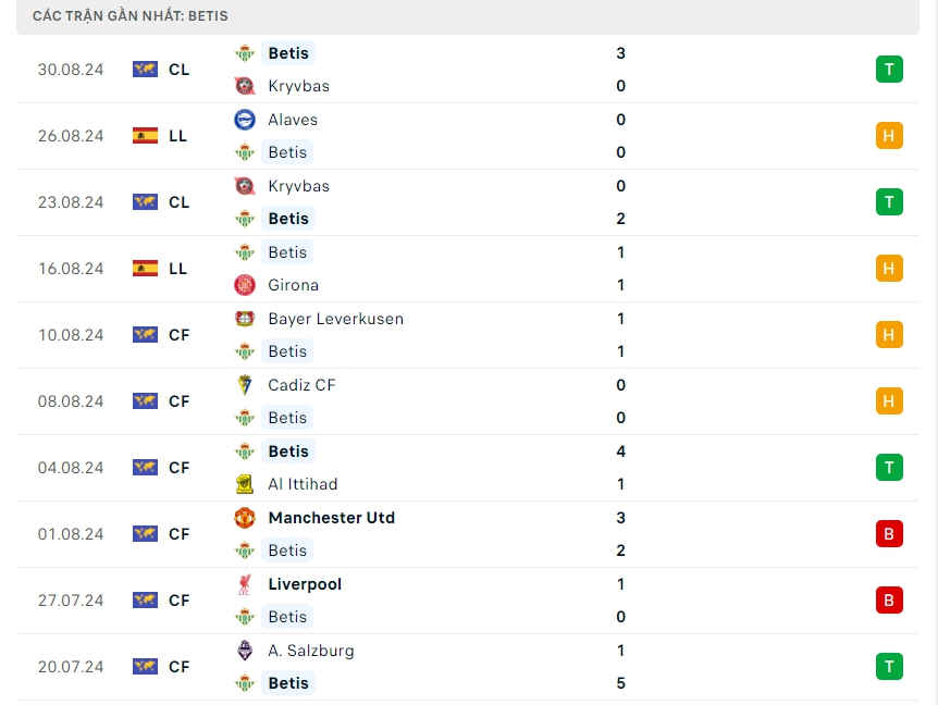 -Phong độ Real Betis