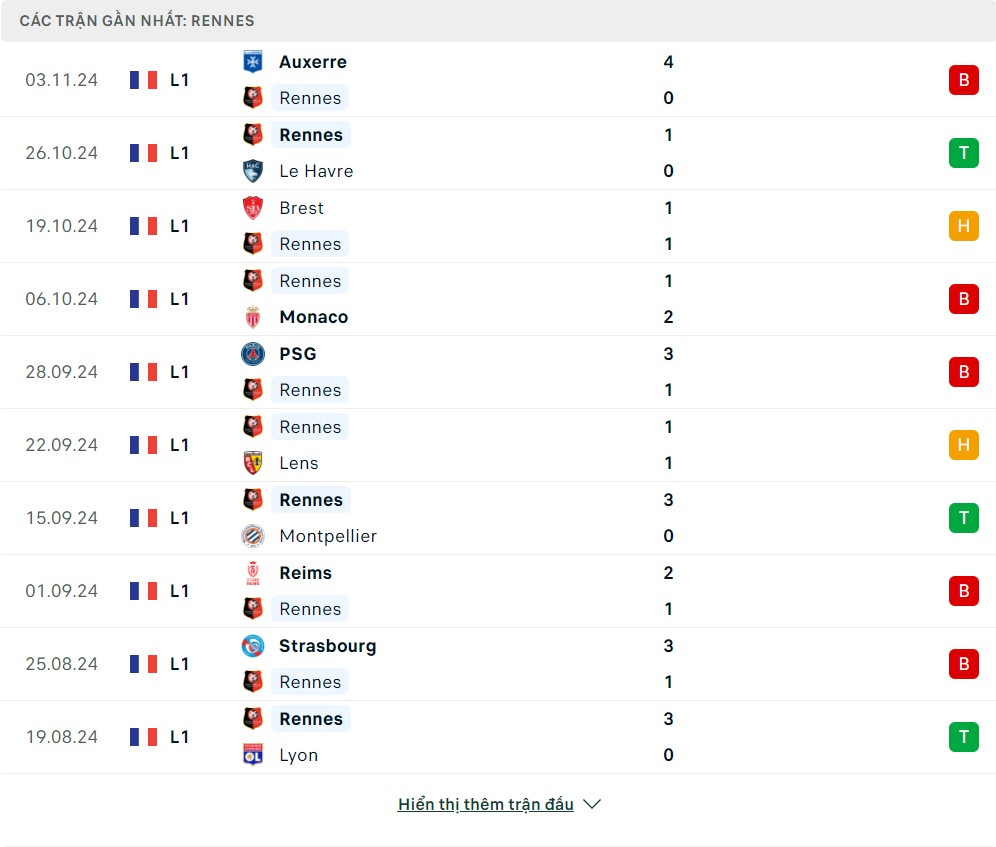 Gây thất vọng ở giai đoạn đầu mùa giải 2024/245, chưa phải quá sớm nhưng cũng chẳng phải quá muộn để người ta gạch tên Rennes khỏi cuộc đua giành vé dự cúp châu Âu mùa tới. Nếu mọi thứ cứ diễn ra như trong quãng thời gian vừa qua, có lẽ đội quân của HLV Julien Stephan chỉ có thể trở thành khán giả. Một hàng công chơi thiếu sáng tạo khi mới có 13 lần điền tên lên bảng điện tử cùng hàng thủ không biết cách bảo vệ thành quả khi đã thủng lưới 16 lần khiến Rennes lúc này chỉ tạm đứng thứ 13 trên BXH. Hiển nhiên con số này khiến người ta không thể không đặt dấu hỏi cho một trận đấu bùng nổ. Cũng lưu ý thêm ở 6 vòng đấu vừa qua, Rennes không thể ghi nhiều hơn 1 bàn thắng/trận.