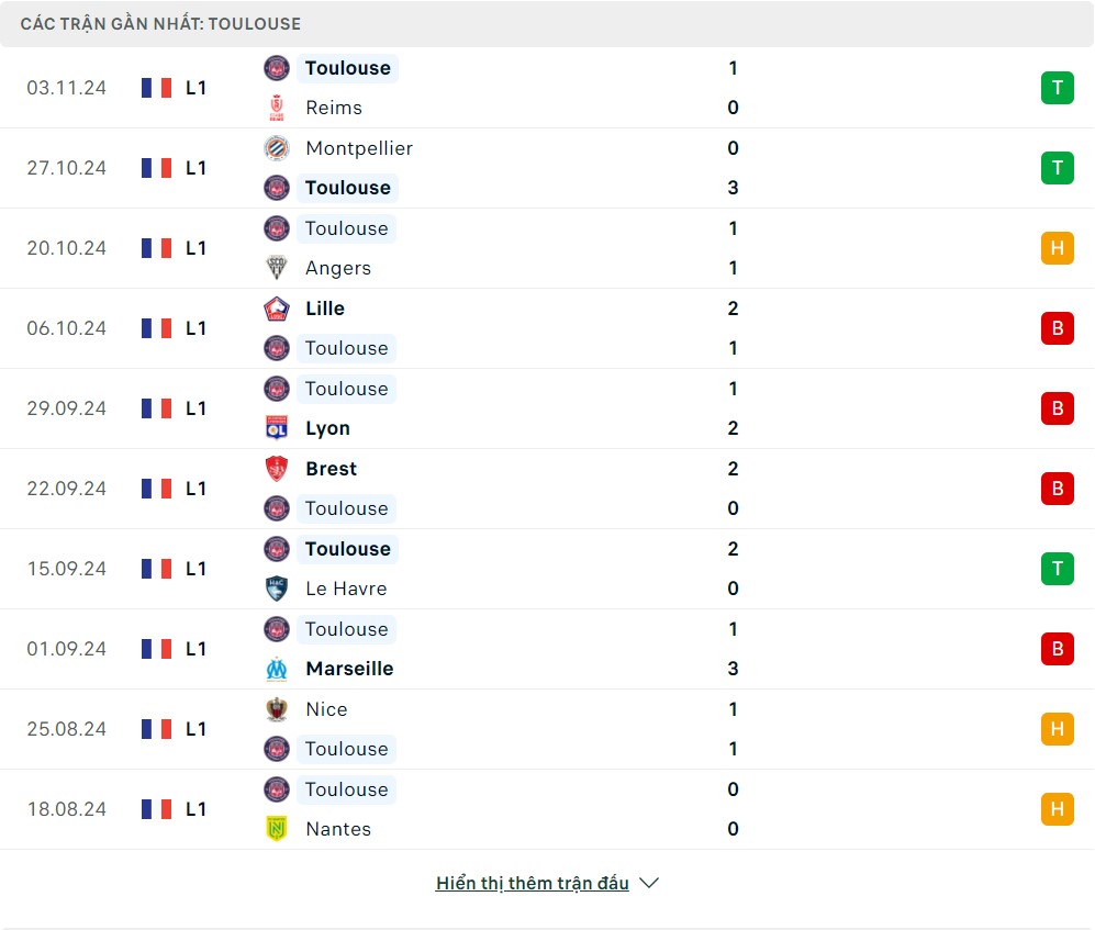 Trong khi đó với Toulouse, tình hình cũng chẳng sáng sủa hơn là bao. Dưới triều đại Carles Martinez, người ta không còn được chứng kiến những trận đấu bùng nổ tới từ đội chủ sân Stadium Municipal. 10 vòng đấu, các chân sút của đội bóng này mới có 11 lần tìm thấy đường vào khung thành đối phương. Trong khi đó, mặt trận phòng ngự được đánh giá là “đỡ” hơn đôi chút so với đội chủ nhà khi cũng thủng lưới 11 lần. Giống như những trận đấu dưới thời Carles Martinez, đây sẽ là chuyến đi mà những toan tính sẽ đồng hành cùng Toulouse. Thay vì tập trung ghi bàn, các vị khách có lẽ sẽ tập trung cho mục tiêu hạn chế số bàn thua.
