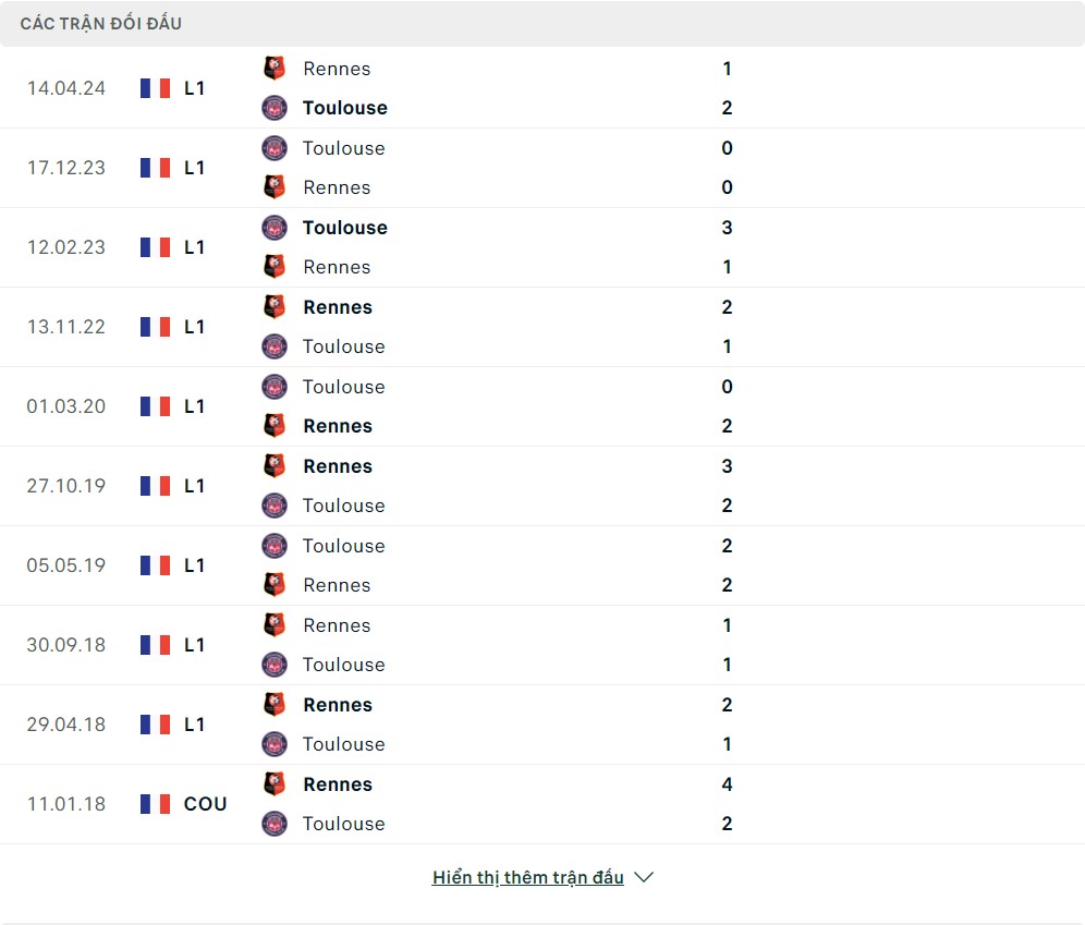 Ở lần gặp nhau gần nhất trên sân nhà ở lượt về mùa trước, Rennes phơi áo 1-2 trước Toulouse. Thế nhưng đó được coi là “tai nạn”. Đang đá sân nhà ổn định, Rennes sẽ không bỏ qua cơ hội để kiểm soát thế trận và có được chiến thắng trong trận đấu tới.