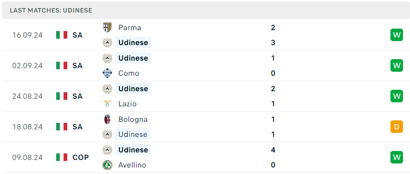 Bên phía kia, dù Udinese chưa bao giờ được đánh giá cao tại Serie A, thế nhưng màn trình diễn của họ thậm chí còn ấn tượng hơn cả AS Roma. Ở vòng đấu đầu tiên, đoàn quân Kosta Runjaić cầm chân được Bologna, trước khi đánh bại Lazio, Como và mới nhất là Parma để vươn lên dẫn đầu BXH. Phong độ ổn định cùng lối chơi chắc chắn hứa hẹn sẽ giúp Udinese trở thành “chú ngựa ô” mới ở mùa giải này. Cuộc đối đầu với AS Roma sẽ là cơ hội để họ tiếp tục chứng tỏ năng lực của mình.