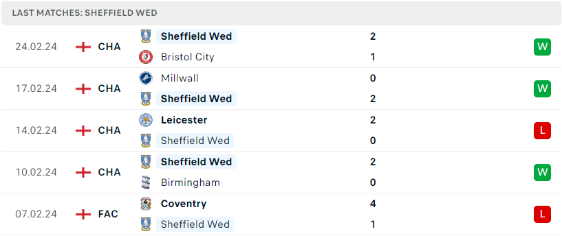 Phong độ của Sheffield Wed