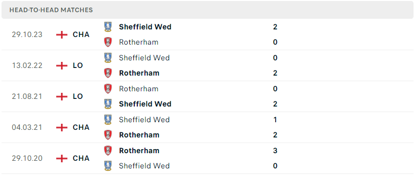 Thành tích đối đầu của Rotherham vs Sheffield Wed