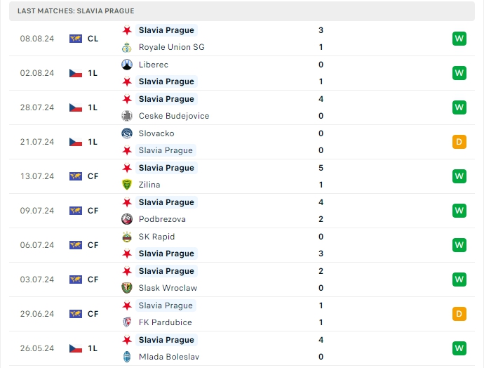 -Phong độ Slavia Prague
