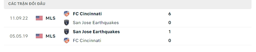 Lịch sử thi đấu của San Jose Earthquakes vs FC Cincinnati