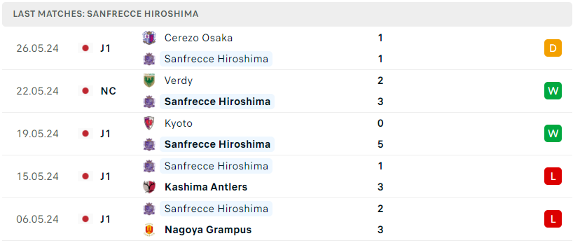 Phong độ đội bóng Sanfrecce Hiroshima vs Iwata