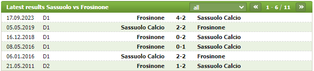 Frosinone là đội đã có được chiến thắng trong màn so tài với Sassuolo trong trận lượt đi giữa hai đội tại Serie A khi mà các vị khách đã đánh bại đối thủ với tỉ số 4-2 chung cuộc. Tuy nhiên Frosinone ở thời điểm hiện tại là tập thể khác rất xa thời điểm đó, có lẽ đây cũng là một chút sự khích lệ với Sassuolo khi mà họ buộc phải khai thác được những yếu điểm từ đối phương diện tìm ra lối thoát cũng như hi vọng bứt phá cho mình.