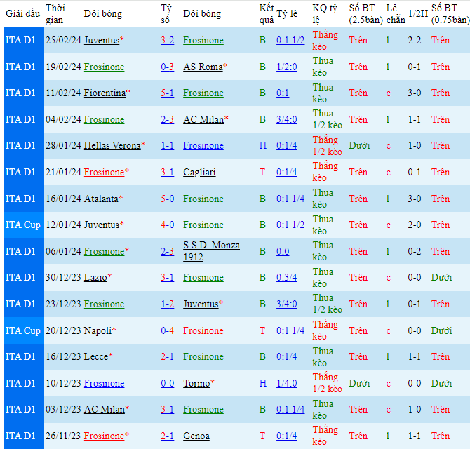 -Phong độ Frosinone