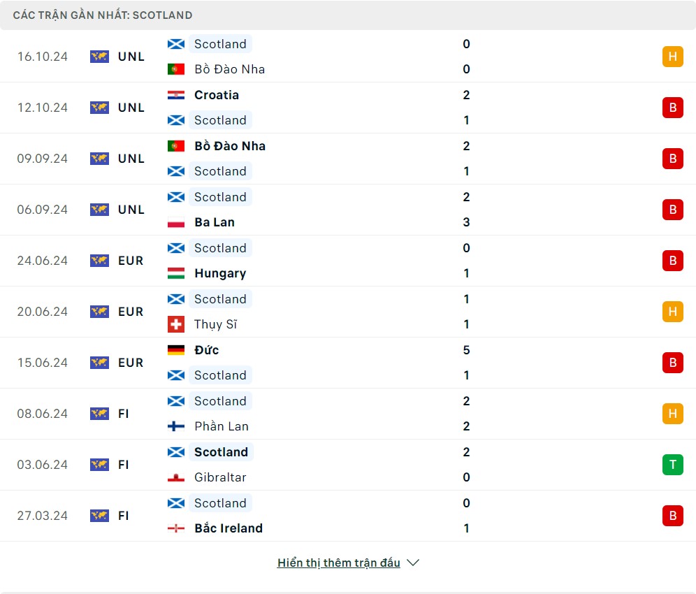 Phong độ đội bóng Scotland vs Croatia