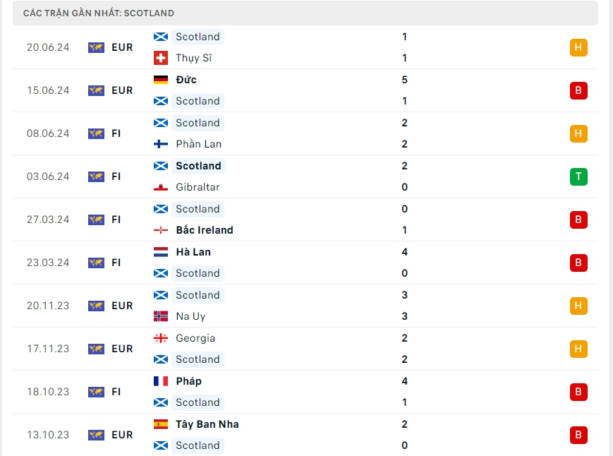 Scotland khép lại 2 lượt trận vòng bảng với 1 thất bại và 1 hòa có được 1 điểm và đang xếp vị trí thứ 3 của bảng A, hàng công của họ không được đánh giá cao khi chỉ mang về 2 bàn thắng sau 2 lượt trận vừa qua, trong đó có 1 bàn thắng trong thất bại 1-5 trước Đức đến từ bàn phản lưới của đối thủ, có thể thấy sức mạnh hàng công của đội bóng này không được đánh giá cao, hàng thủ đang là điểm yếu khi nhận 6 bàn thua vừa qua.