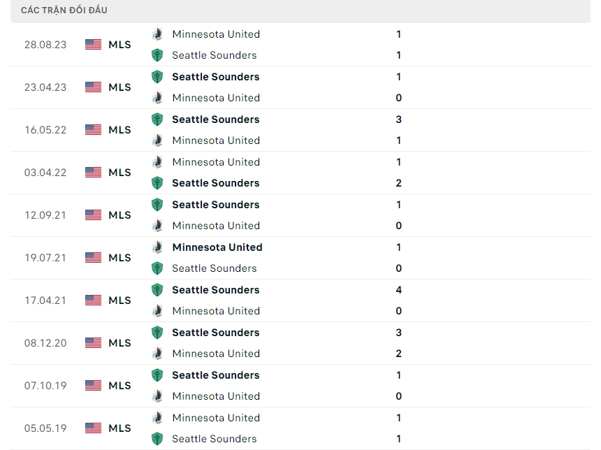 Lịch sử thi đấu của Seattle Sounders vs Minnesota Utd