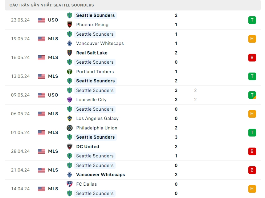 -Phong độ Seattle Sounders