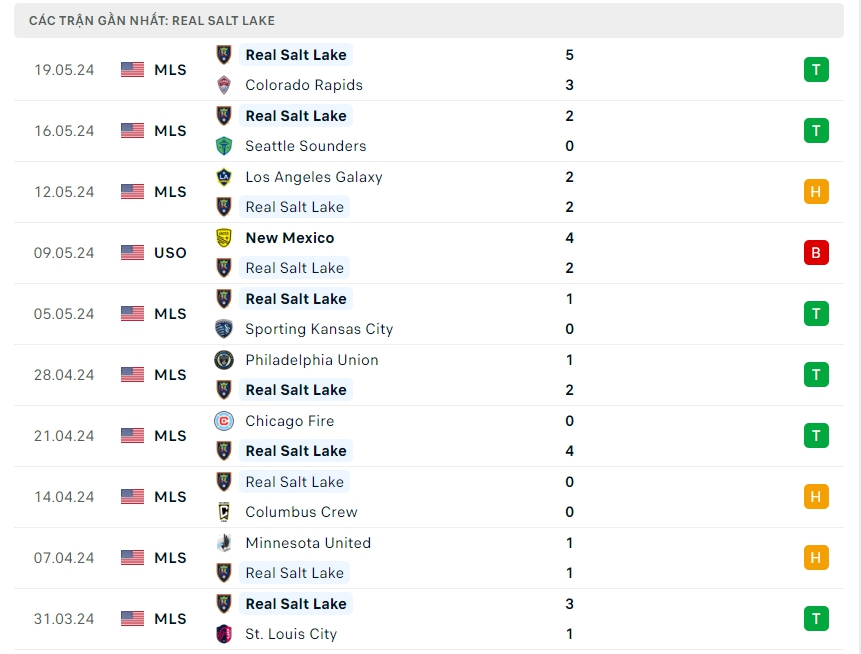 -Phong độ Real Salt Lake