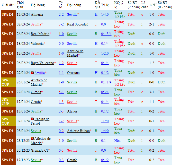 -Phong độ Sevilla