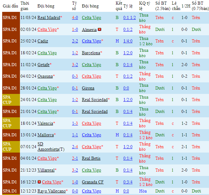 -Phong độ Celta Vigo