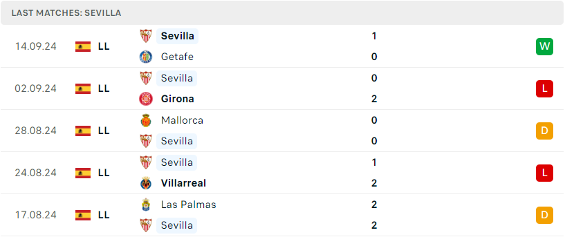 Phong độ đội bóng Sevilla vs Valladolid