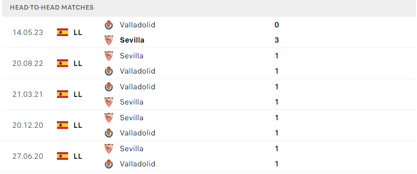 Trong cuộc chạm trán vào tháng 5 năm ngoái, Sevilla cũng đã xuất sắc đánh bại Valladolid với tỉ số 3-0. Thậm chí, ở 10 lần gặp nhau gần nhất thì Nervionenses cũng đã bất bại cả 10 trận. Một thống kê chắc chắn sẽ tiếp thêm sự tự tin và sức mạnh tuyệt đối dành cho đoàn quân García Pimienta. Sự non nớt và yếu kém của Valladolid sẽ khiến họ phải trả giá.