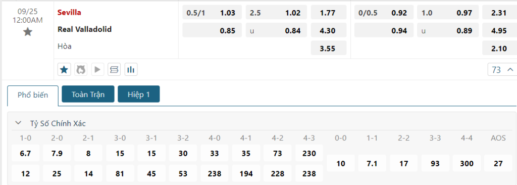 Soi kèo tỉ số Sevilla vs Valladolid