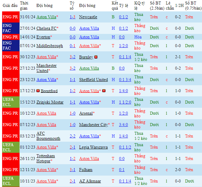 Chắc chắn đây là một thời điểm mà Aston Villa đang không cảm thấy hài lòng về chuỗi phong độ của mình. Thất bại 1-3 trước Newcastle và xa hơn một chút là chỉ 1 chiến thắng duy nhất trong 4 vòng đấu gần đây rõ ràng đã mang đến cho binh đoàn miền Trung nước Anh những bất lợi. Họ đang dần đánh mất lợi thế trong cuộc đua top đầu khi đã chính thức bật bại khỏi top 4 với 43 điểm sở hữu lúc này. Dù sao thì khoảng cách cũng chỉ là ở chỉ số phụ và Aston Villa sẽ cần phải vùng lên mạnh mẽ nhằm tìm ra sự thay đổi cho mình.