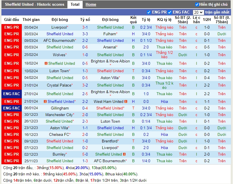 -Phong độ Sheffield Utd
