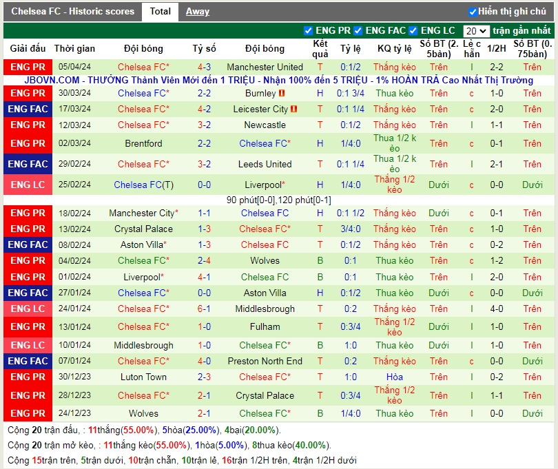 - Chọn Chelsea HT
