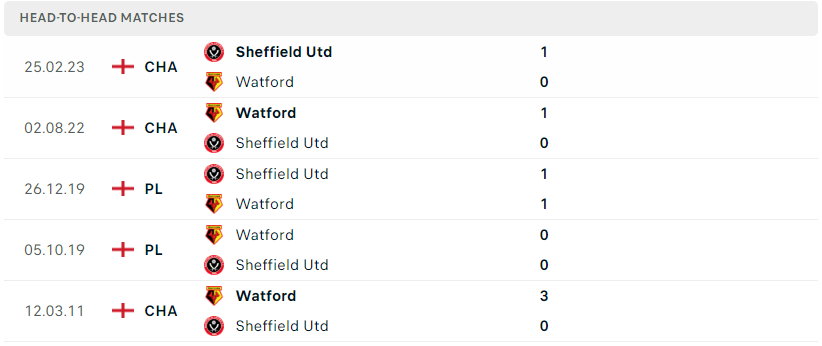 Thành tích đối đầu của Sheffield Utd vs Watford