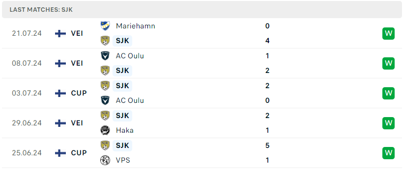Sự thăng hoa thêm một lần nữa được SJK thể hiện với màn hủy diệt Mariehamn 4 sao ở vòng đấu trước, chiến thắng này đã là thắng lợi thứ 5 liên tiếp của tập thể này. Tại vòng đấu kế tiếp vào cuối tuần này, đoàn quân của Joaquín Gómez sẽ lại có cơ hội nối dài mạch thăng hoa này và thậm chí tạo lợi thế trong cuộc chiến ngôi đầu khi chỉ phải đón tiếp “kẻ đội sổ” Lahti.