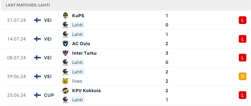 Bên phía đối diện, màn thể hiện của Lahti ở mùa giải này lại đang cho thấy điều hoàn toàn ngược lại. Không chỉ thi đấu một cách đầy yếu kém và sa sút, Lahti còn chẳng cho thấy được bất kỳ sự phản kháng nào. Việc chỉ mang về 9 điểm sau 16 vòng đấu đã cho thấy rõ điều đó. Khoảng cách điểm số giữa họ và nhóm đua vô địch đã lên đến 16 điểm. Nếu không sớm tìm lại biện pháp cải thiện và hay chi ít là khắc phục tạm thời, tấm vé xuống hạng chính là thứ đang chờ đợi tập thể này.