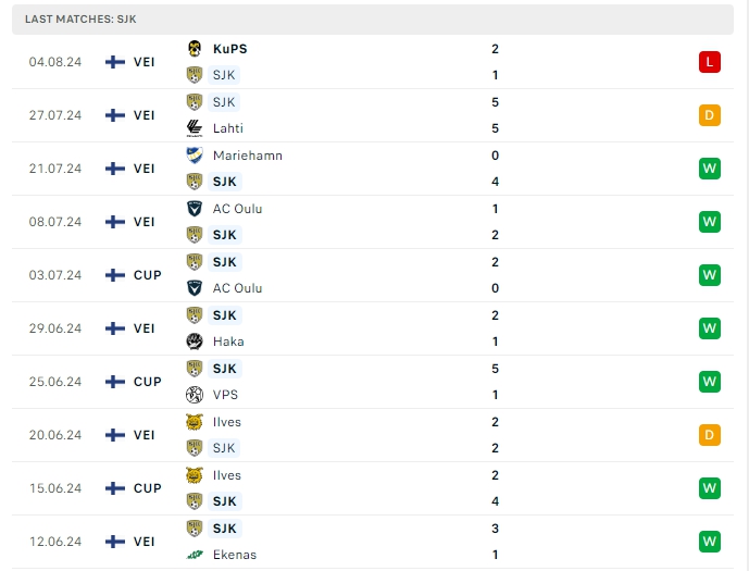 Phong độ đội bóng SJK vs VPS