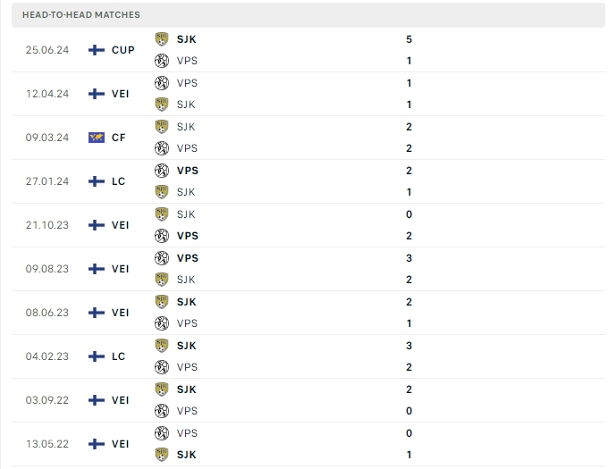 Lịch sử thi đấu của SJK vs VPS