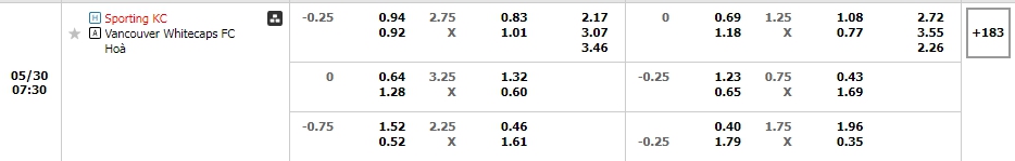 Bảng tỷ lệ kèo bóng đá trận đấu Sporting Kansas City vs Vancouver Whitecaps