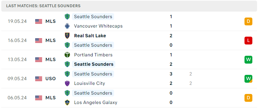 Bên phía kia, Seattle Sounders cũng đang gặp phải tình trạng tương tự khi dù họ đang chơi tương tốt tại cup Mỹ mở rộng với tấm vé vào bán kết nhưng tại MLS đoàn quân Sigi Schmid lại tỏ ra vô cùng cập rập. Trận hòa trước Vancouver Whitecaps vừa qua đã là trận không thắng thứ 2 liên tiếp của tập thể này. Dù lối chơi của Seattle Sounders vẫn cho thấy nhiều điểm sáng, tuy nhiên nếu không có những sự điều chỉnh mang tính bước ngoặt, họ vẫn sẽ đậm chân tại chỗ.