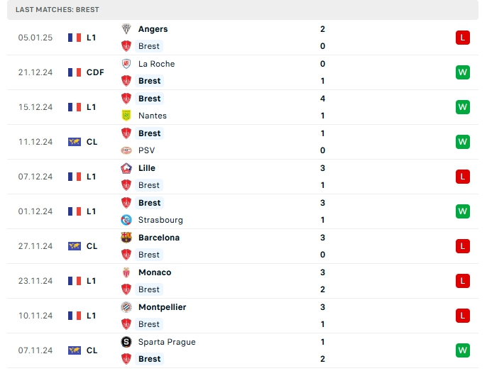 -Phong độ Stade Brestois