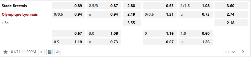 Dù có được ưu thế sân nhà nhưng Stade Brestois vẫn không được đánh giá cao khi đón tiếp Lyon trong trận đấu sắp tới mà những người đang được đánh giá cao hơn là các vị khách qua mức kèo chấp mà nhà cái niêm yết là 0.25, xét về thực lực rỏ ràng Stade Brestois không được đánh giá cao so với Lyon, sự ổn định là điều Stade Brestois đang không có, dù trên sân nhà Stade Brestois vẫn đang chơi khá tốt nhưng bằng đó là chưa đủ để họ nghĩ đến điểm số so với quyết tâm và những màn trình diễn tốt của Lyon thời gian qua, lịch sử đối đầu cũng không ủng hộ Stade Brestois khi họ không có được kết quả tốt khi đón tiếp Lyon, một trận đấu mà Lyon sẻ chiếm ưu thế và có được chiến thắng để có cơ hội vươn lên vị trí thứ 4 trên BXH.