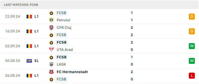 Phong độ đội bóng Steaua Bucuresti vs Rigas Futbola Skola