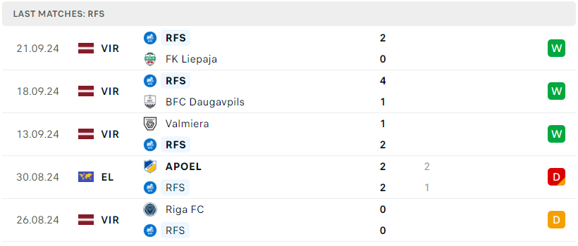 Bên phía kia, RFS chính là đại diện số 1 của Latvia và và họ đã xuất sắc vượt qua vòng loại sau khi đánh bại hai đối thủ đáng gờm là APOEL và UE Santa Coloma. Những chiến thắng này không chỉ khẳng định sức mạnh của RFS mà còn chứng tỏ họ hoàn toàn có khả năng tạo nên bất ngờ tại đấu trường châu Âu. Việc bị đánh giá là nhóm hạt giống số 4 chắc chắn không ảnh hưởng đến tâm lý của họ và chuyến làm khách đến sân của đối thủ cùng ‘pot’ có thể sẽ là cơ hội để họ thể hiện mình.
