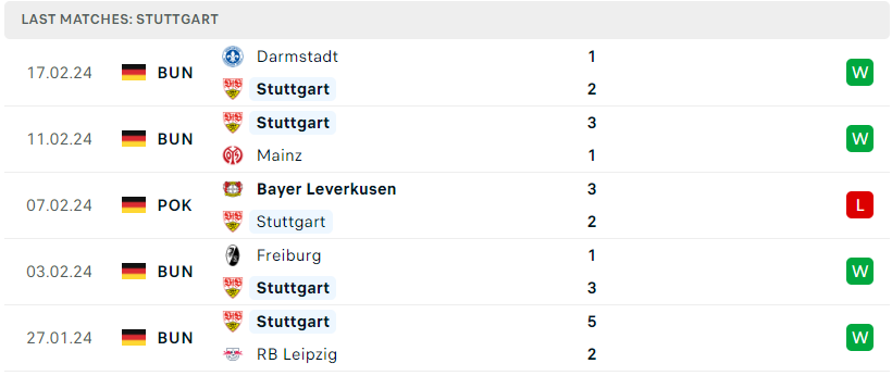 Phong độ của Stuttgart