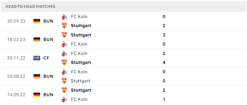 Thành tích đối đầu của Stuttgart vs FC Koln