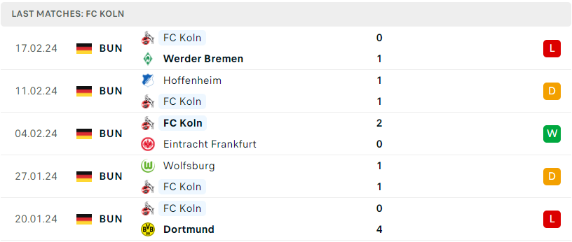 Phong độ của FC Koln