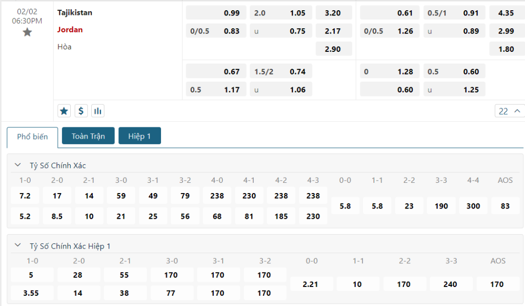 Soi kèo Châu Á, kèo chấp Tajikistan vs Jordan