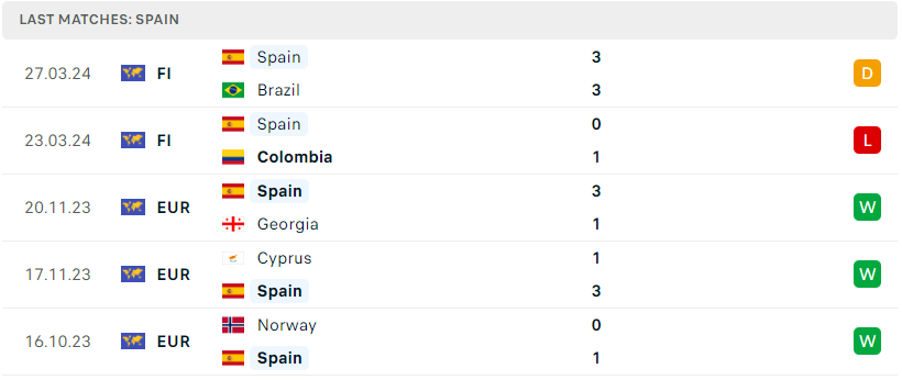 Phong độ đội bóng Tây Ban Nha vs Bắc Ireland