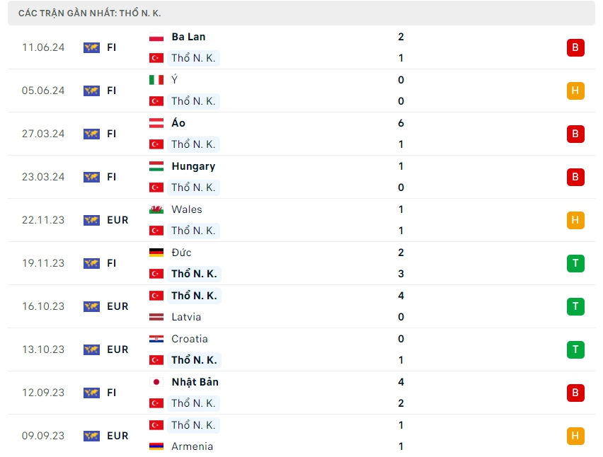 Phong độ đội bóng Thỗ Nhĩ Kỳ vs Bồ Đào Nha