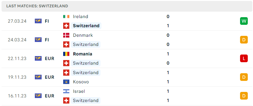 Phong độ đội bóng Thụy Sĩ vs Estonia