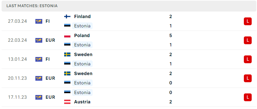 Bên kia, việc bị đánh giá là một trong những tập thể yếu kém bậc nhất tại “lục địa già” quả thật không sai với ĐT Estonia, khi tập thể này thậm chí còn chẳng mang về được bất kỳ chiến thắng nào tại vòng loại Euro và kể từ cuối năm 2022 thì họ vẫn chưa mang về được bất kỳ chiến thắng nào tại các giải đấu quốc tế. Một đội tuyển tương đối non trẻ cộng kèm với chất lượng cầu thủ không quá cao khiến cho Estonia ngày càng bị bỏ lại. Chạm trán Thụy Sĩ sẽ là cơ hội để họ học hỏi kinh nghiệm.