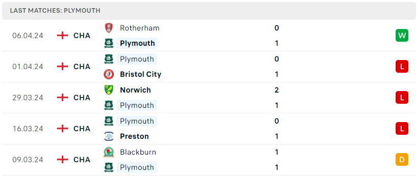 Phong độ của Plymouth